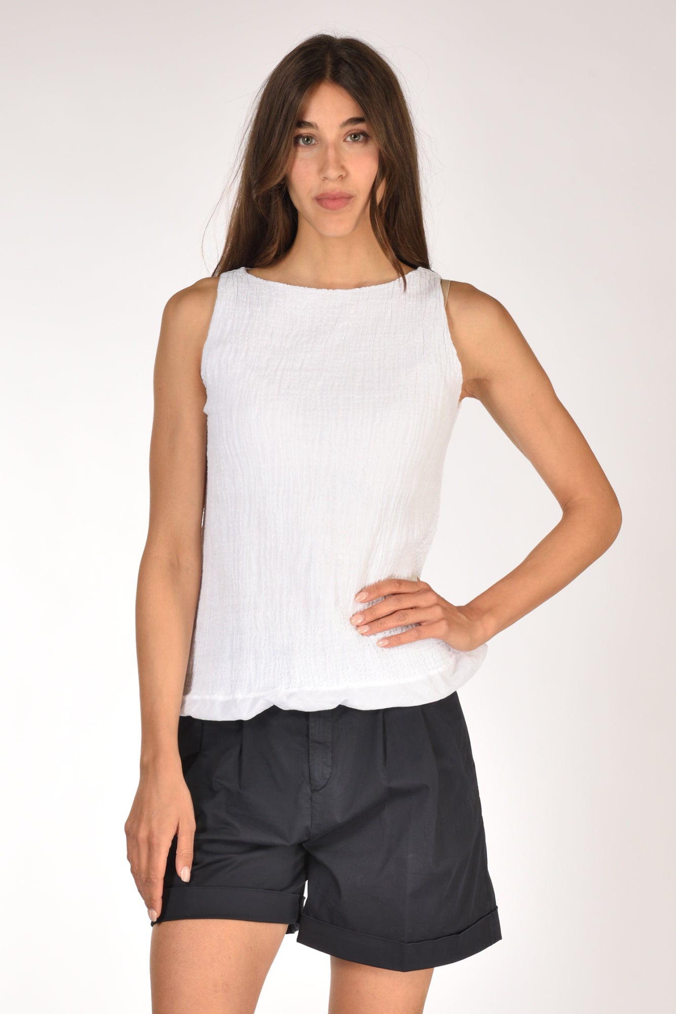 Canotta Realizzata In Tessuto Goffrato, Scollo A Barchetta, Linea Svasata, Foderata, Fondo Con Balza, Vestibilita' Regular, Made In Italy, Composizione 70 Ramie, 30 Cotone, Fodera 100 Cotone