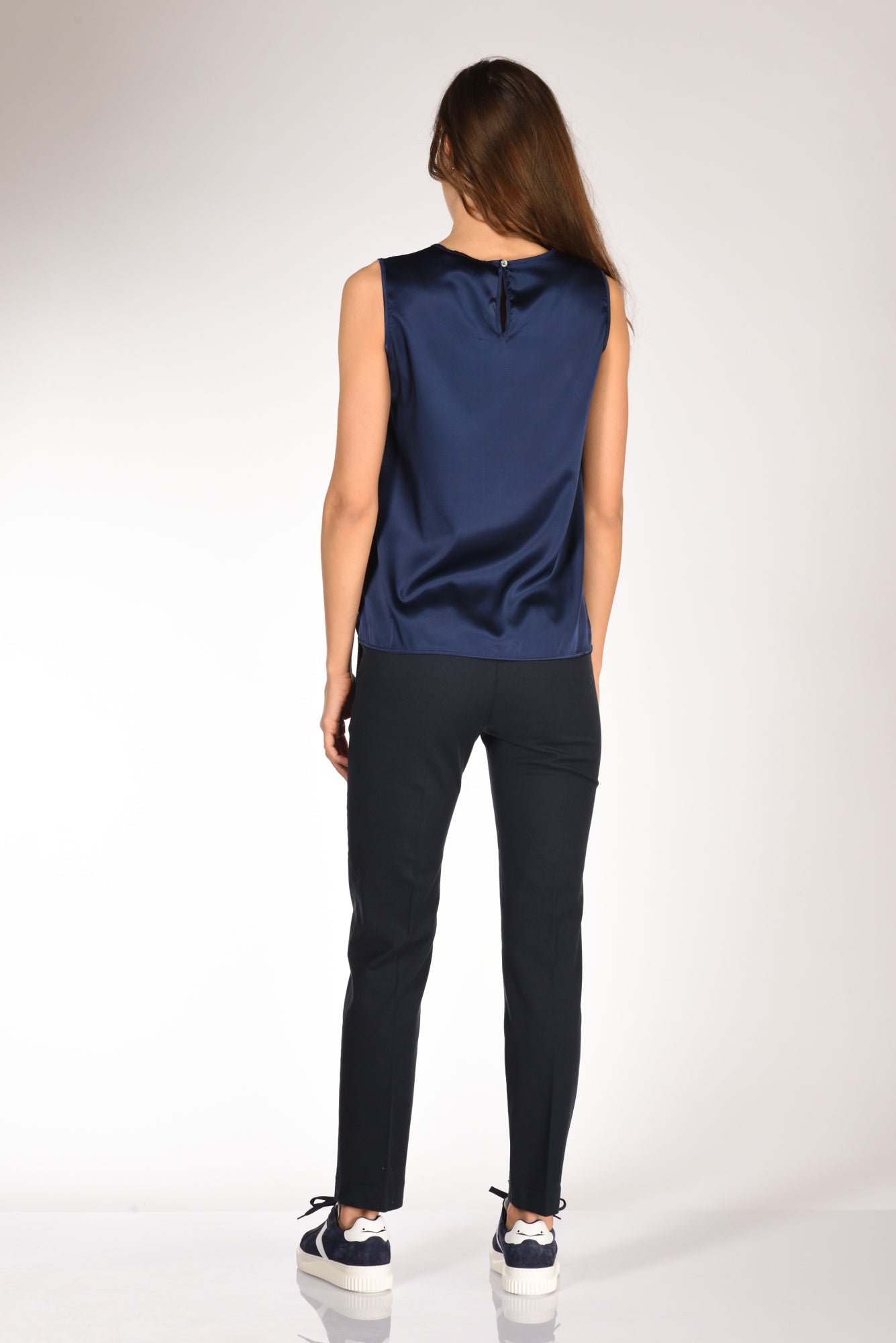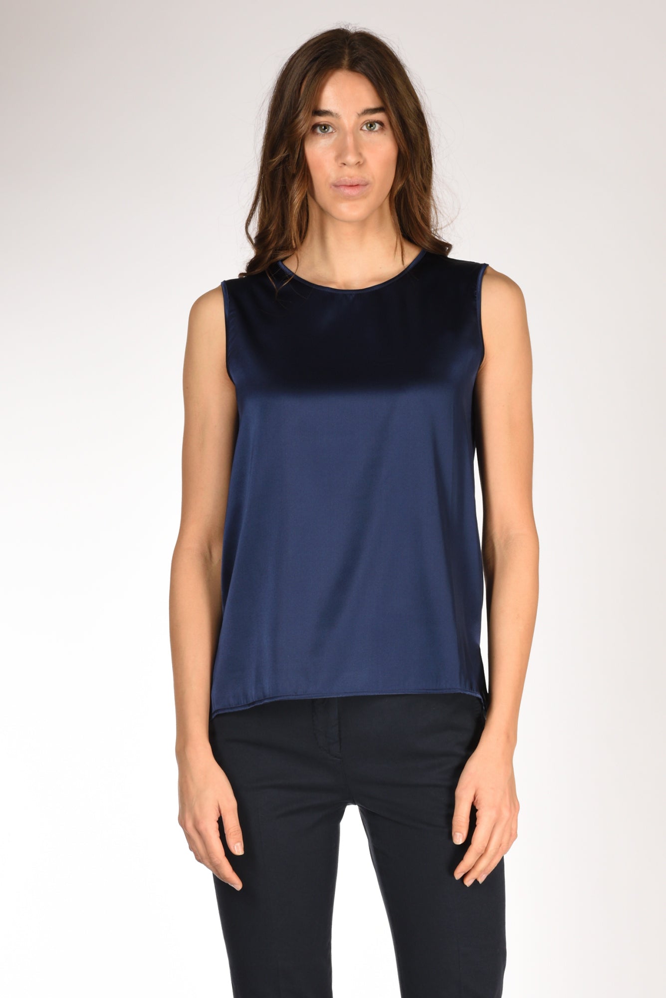 Canotta Spalla Larga Dall'effetto Satinato, Scollo Tondo Ampio Con Chiusura Posteriore A Goccia Con Asola E Bottone, Linea Diritta, Fondo Con Spacchi, Made In Italy, Composizione 94 Seta, 6 Elastan