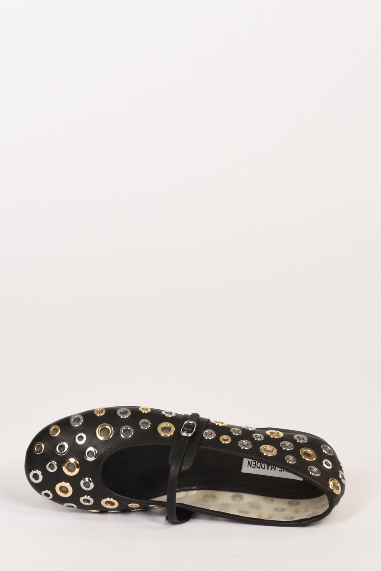 Ballerine Raso Terra Con Motivo Decorativo Di Cerchi Cavi Oro Ed Argento, Cinturino Regolabile, Foderata, Punta Tonda, Tomaia In Similpelle, Suola Sintetica, Made In China.