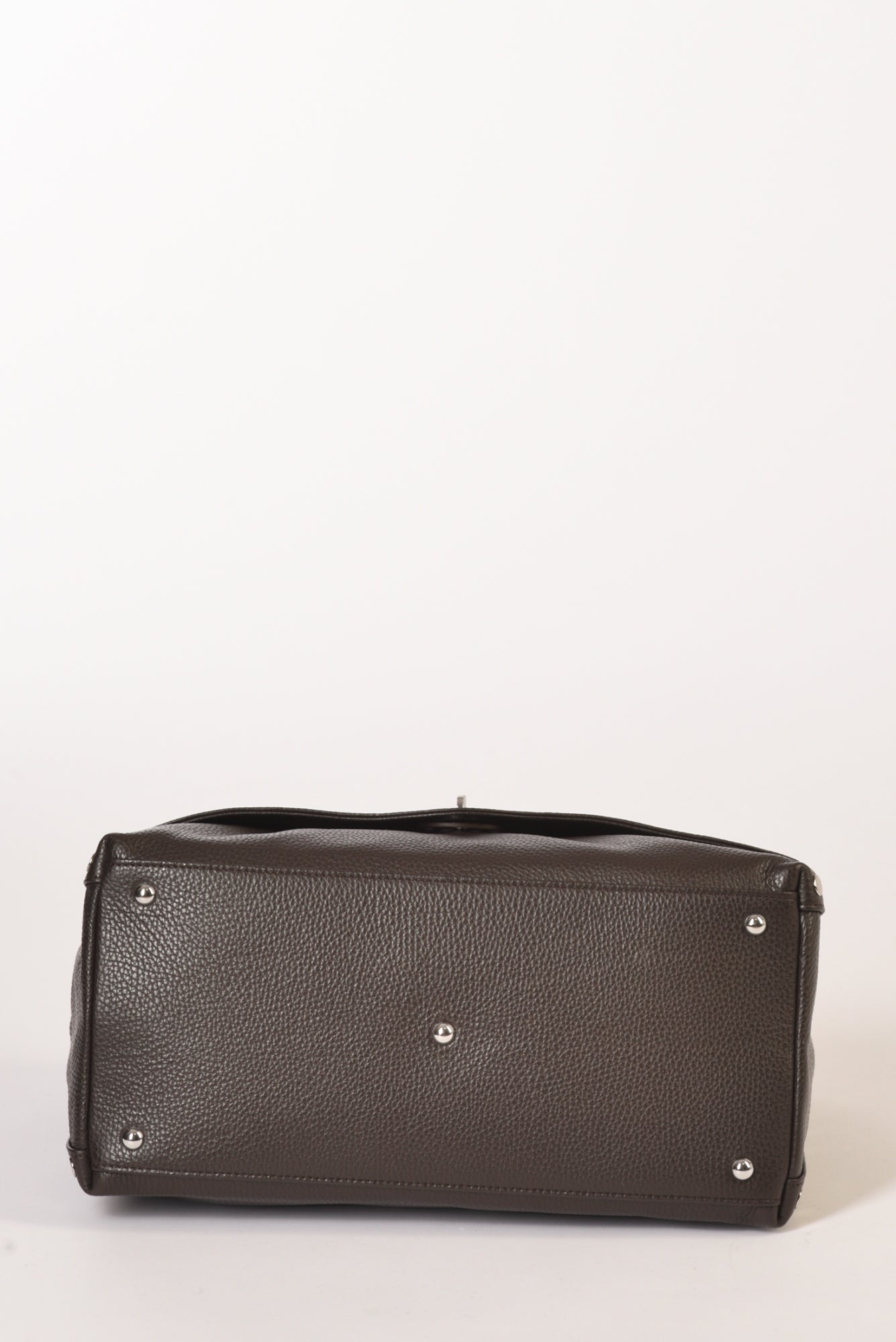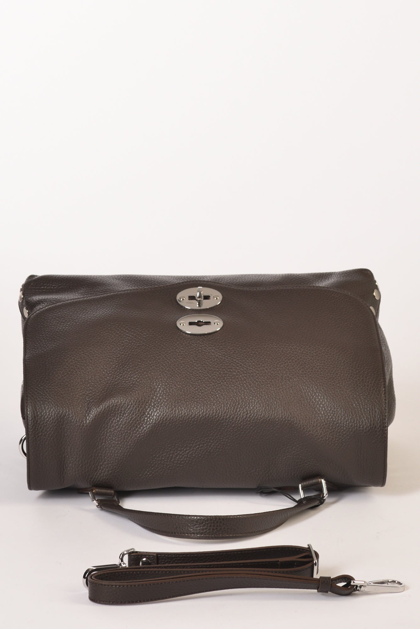 Borsa A Mano Modello Postina, Chiusura A Girello Con Patta Battente, Tracolla Regolabile Ed Amovibile, Lavorazione Pelle Martellata, Internamente Presenta Due Tasche Multiuso Di Cui Una Zippata E Due Scomparti, Borchie A Vista Metalliche, Fondo Con Piedini, 100 Pelle, Made In Italy, Misure Cm 34x24x17
