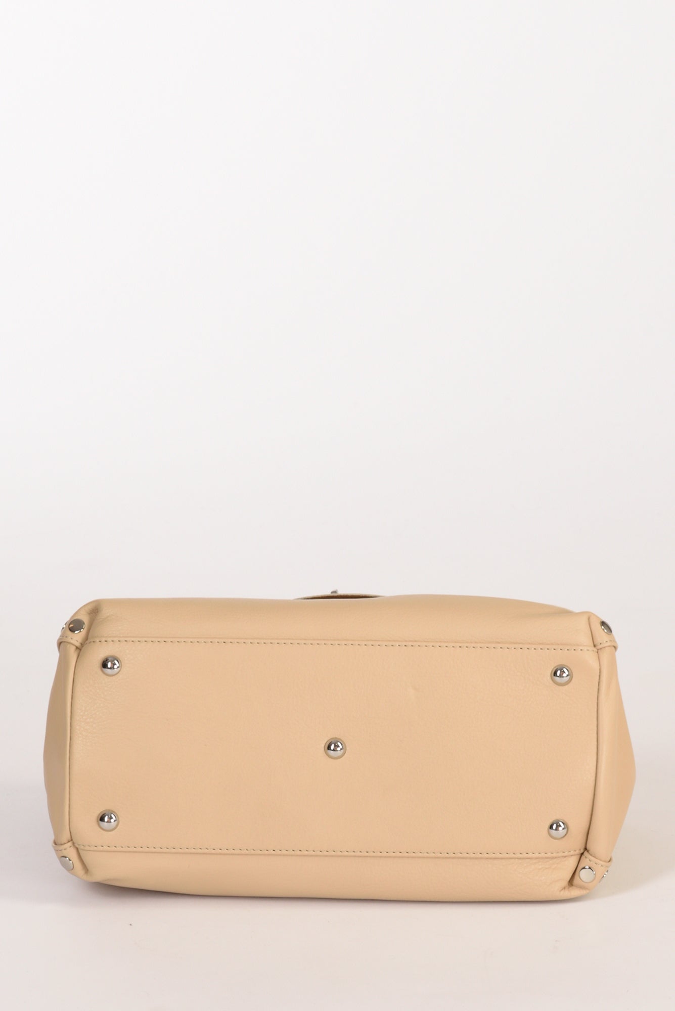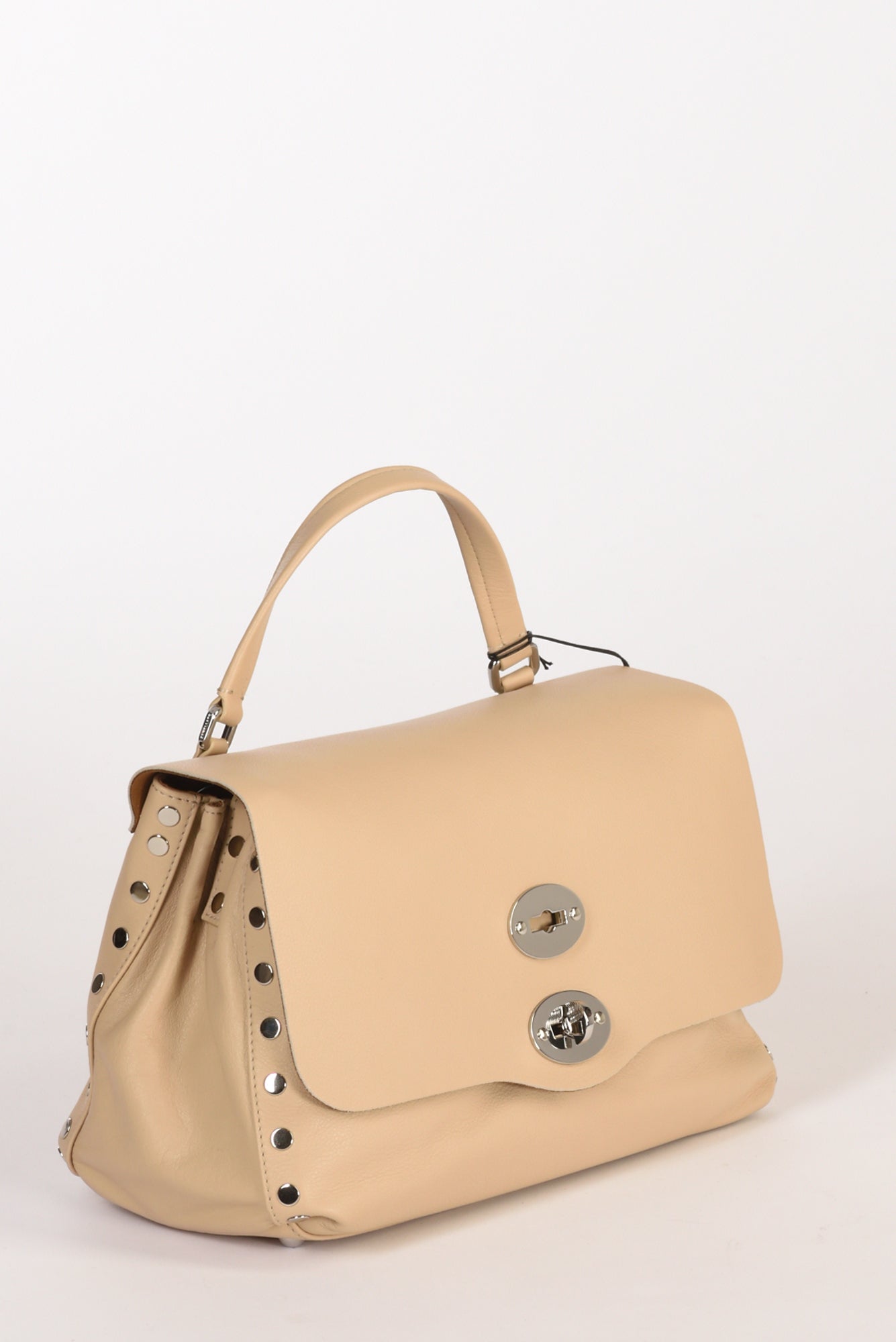 Borsa A Mano Modello Piuma, Chiusura A Girello Con Patta Battente, Tracolla Regolabile Ed Amovibile, Lavorazione Pelle Liscia, Internamente Presenta Due Tasche Multiuso Di Cui Una Zippata E Due Scomparti, Borchie Metalliche A Vista, Fondo Con Piedini, 100 Pelle, Made In Italy, Misure Cm 30x14x20